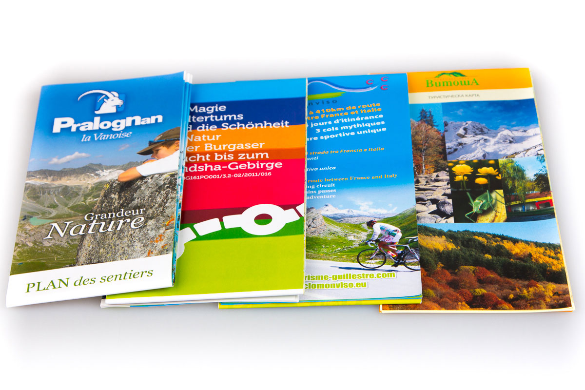 Fabrication d’après la conception du client. Le papier le plus couramment utilisé est 80gr/m2 mat ou 115gr/m2 mat avec des options différentes pour le pliage et possibilité de laminage ou vernissage supplémentaire. Possibilité d'emballage dans un seul sac.